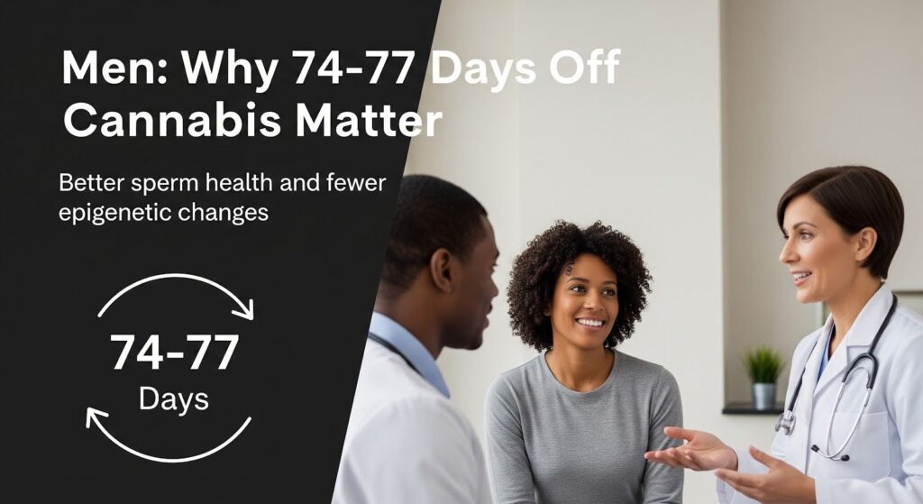 For male fertility, at least one full spermatogenic cycle of abstinence, about 74 to 77 days, substantially reduces cannabis-linked sperm epigenetic alterations.