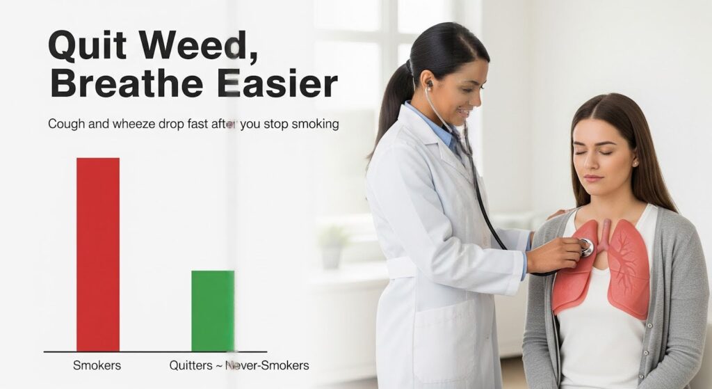 The clinically meaningful message is clear: quitting smoked cannabis reduces bronchitic symptoms and can normalize chronic bronchitis risk over time, though the extent of spirometric reversibility is less certain and may be incomplete, especially in heavier or longer-duration users.