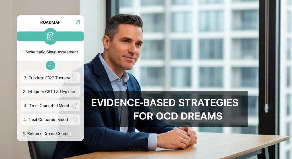 Recognize that obsessive themes in dreams are common across people and don’t indicate worsening OCD. Reducing catastrophic interpretations of dream content can lower distress and improve sleep quality.