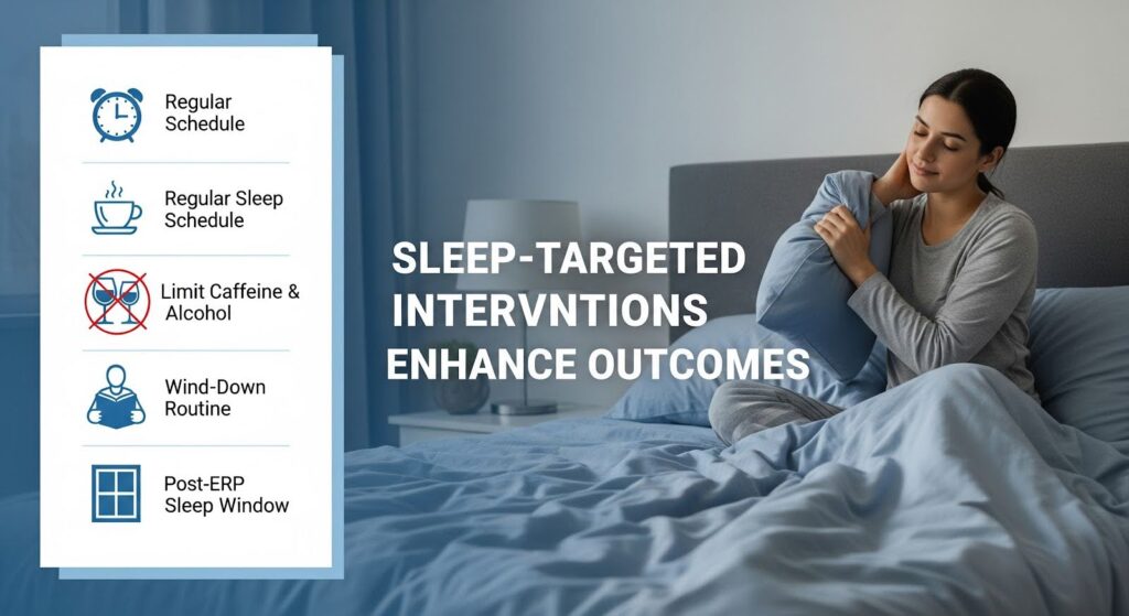 Given that sleep problems predict weaker treatment response, integrating sleep-focused care makes sense. Cognitive behavioral therapy for insomnia and circadian realignment strategies can improve sleep continuity, reduce arousal, and enhance ERP learning and consolidation.